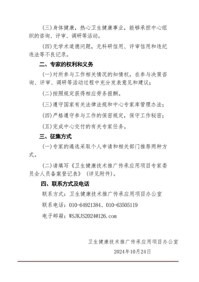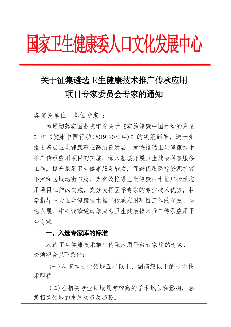 您现在的位置是:首页>新闻资讯 > 通知公告 > 关于征集遴选卫生健康技术推广传承应用项目专家委员会专家的通知 发布时间:2024-10-25 09:44:00 来源: 附件:卫生健康技术推广传承应用项目专家委员会人员备案登记表 上一篇:关于政协第十四届全国委员会第三次会议第04560号(商贸监管类209号)提案答复的函 下一篇:最后一页 相关文章